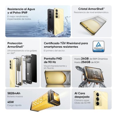 La batería del realme C75 5828mAh. Datos proporcionados por realme Lab, solo como referencia. Los datos reales podrían verse afectados por el entorno de prueba.