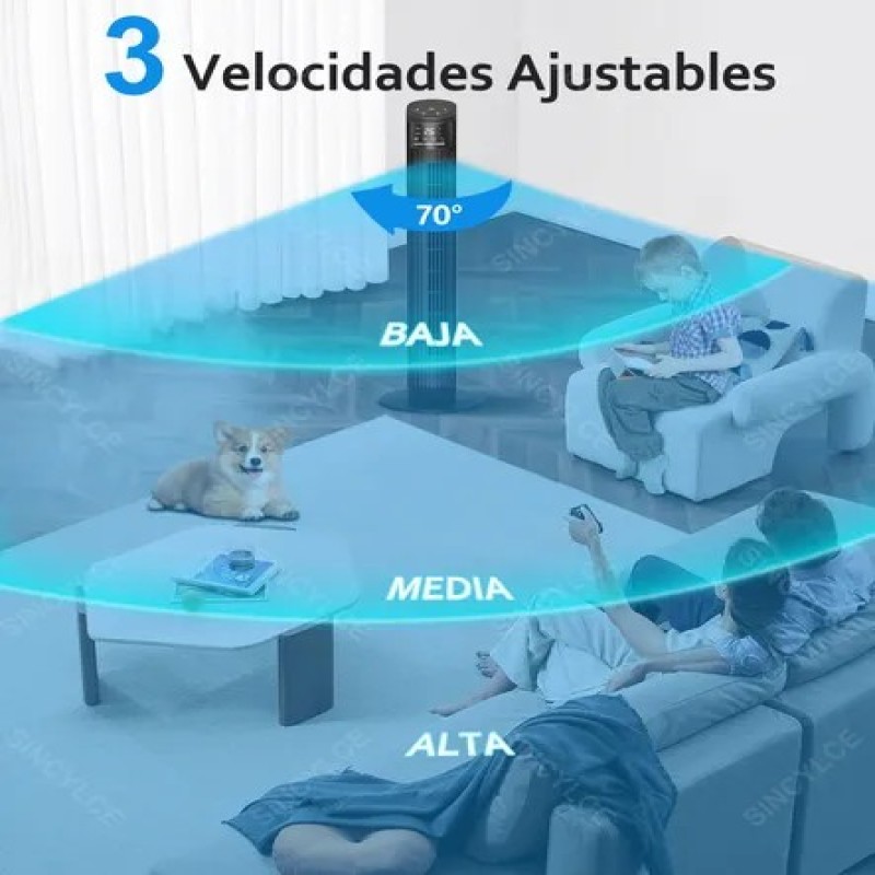 Este ventilador de torre ofrece tres ajustes de velocidad del